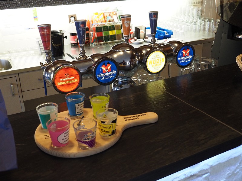 Unsere Dorfbar bietet neben dem Espresso noch zahlreiche Drinks und Cocktails an. Verweilen Sie am Abend mit Kollegen, Freunden und Familie auf das ein oder andere Bier oder kommen Sie zu unserer Happy Hour, wo Sie unsere leckeren Drinks zu einem unschlagbaren Preis geniessen können.